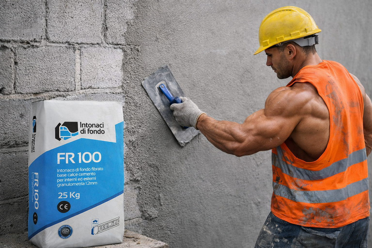 Premier FR100 – Intonaco Di Fondo Fibrorinforzato base Calce/Cemento per Interni ed Esterni
